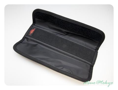 三つ折の内側にベルトを通し面ファスナーで固定します。