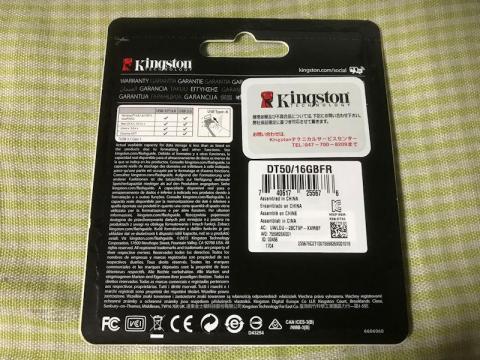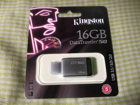 先日デスクトップ用のDDR4メモリーを買ったときに、送料無料になるからと細かいセール品を一緒に注文しておいたのですが、その中の一つがこのUSBメモリー、Kingston DataTraveler DT50/16GBFRです。