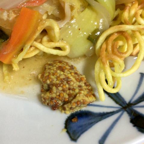 でも、正直を言うと、あんかけ焼きそばには普通の辛子の方が辛くて美味しいかも知れません。