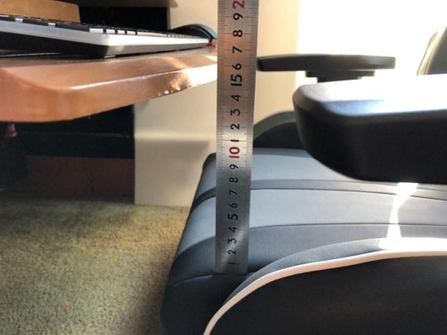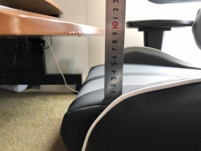 測ってみたら座面からキーボードまで9cm。足ははいるけどぎっりぎりです。