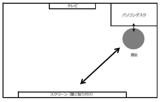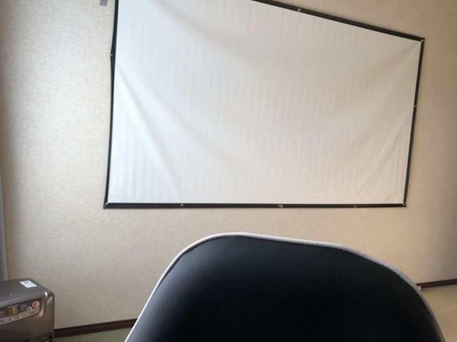 壁に貼り付けのスクリーンでくるっと振りむけば鑑賞開始。