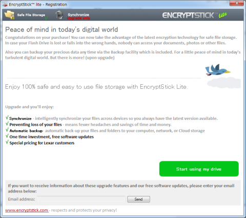 なお、出荷時点で本体内に「EncryptSrick Lite」という暗号化ツールが収録されています。使うかどうかは微妙なところですが、ダウンロード提供ではなく直接保管している辺りは割合良心的と言えるかも知れません。