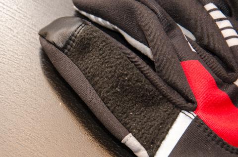 また、人差し指の所にタオル地が縫い込まれているので、額に汗をかいたときなどに、この部分で拭うことができます。