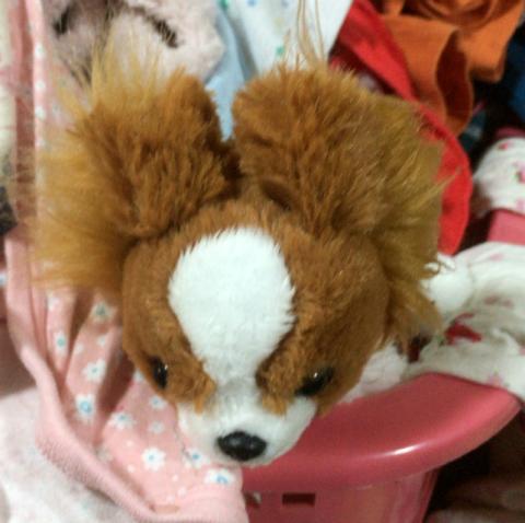 我家の愛犬の”L”と似た色の縫いぐるみです。