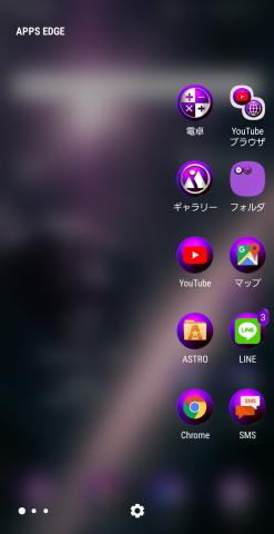 右側の湾曲したサイド画面を撫でるとショートカットを登録する事ができ、