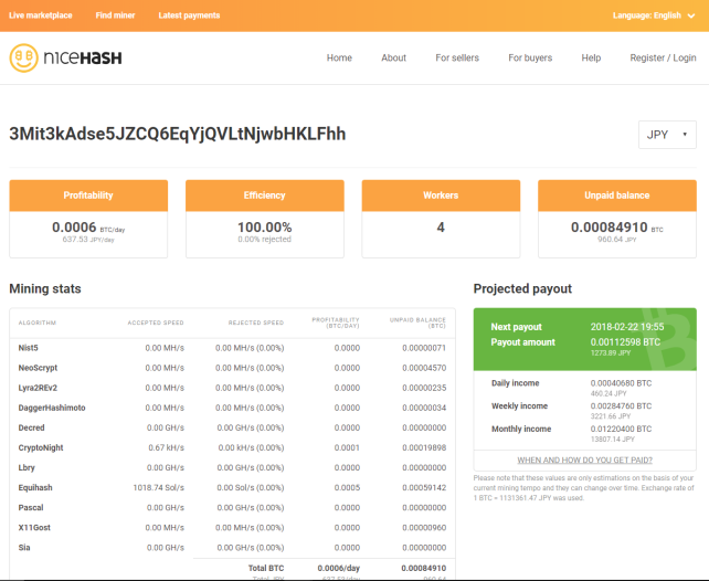 マイニングは採掘難易度が上がる一方なので、採掘量も減少方向になってまして日に日に厳しくなってきてますね( ;∀;)