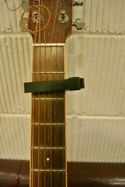 私はダンロップ社製の、テコを利用した非常にシンプルなカポタストを愛用しておりましたが、合成繊維製のベルトが破断してしまい 今は手元にありません。