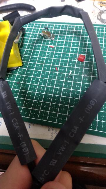 ⑤片側をハンダ付け。そして熱収縮チューブを適度な長さに切って入れる。