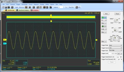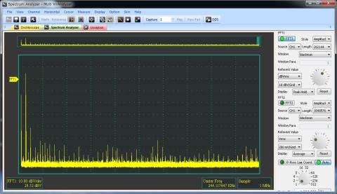 波形の表示ですが波形にジワジワしたノイズがでます この手の測定器はノイズとなって表示されるようです USBのノイズが乗っているのかどうかは不明です 実用上は支障がないです それと波形表示のレスポンスが入力波形に追従しない時もあります(なんとか表示はされますが)ブラウン管式のオシロスコープと同等という感じではないですね 入力周波数が高くなるとオシロ表示が遅れるようで表示回路能力が間に合わない感じはします。