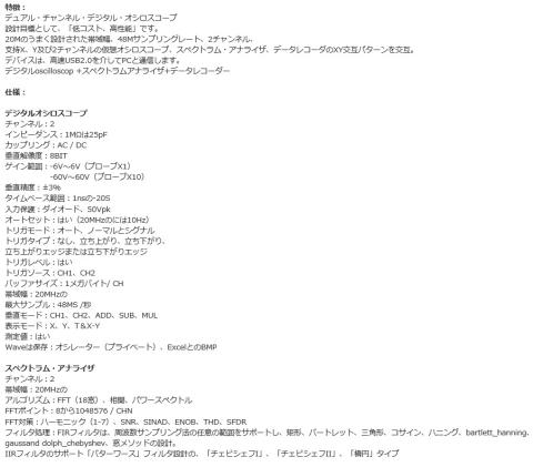 - デジタルoscilloscope +スペクトラムアナライザ+データレコーダー