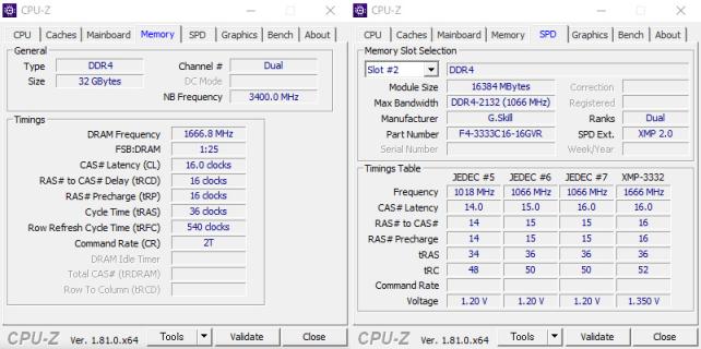 メモリは、DDR4-3333 16GBx2=32GBを搭載しています。