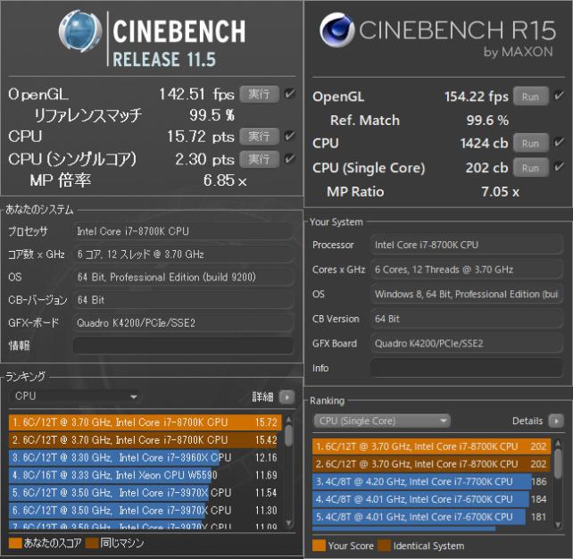 グラフィックスカードが、nVIDIA Quadro K4200なので、OpenGLのスコアは高いですが、参考まで。