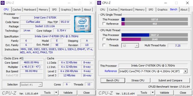 Core i7 7700Kと比較しても、マルチコアで144%のパフォーマンスです。