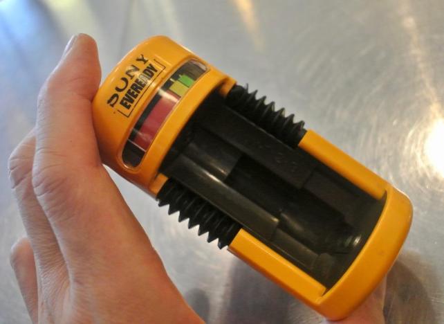 単4〜単1電池とボックス型9V電池の、大まかな残量を目視できます。