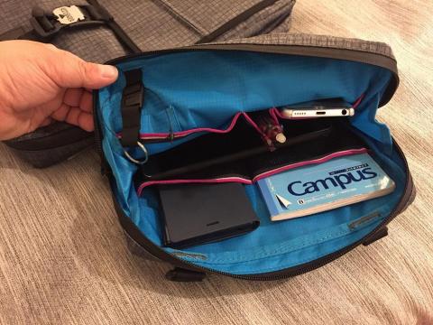 モバイルバッテリーなどカバンを変えても使用する小物を収納できます。
