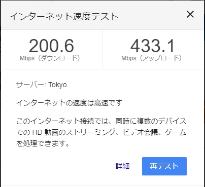 なお、ネットの回線速度も以前のルーターよりも格段に上がりました。