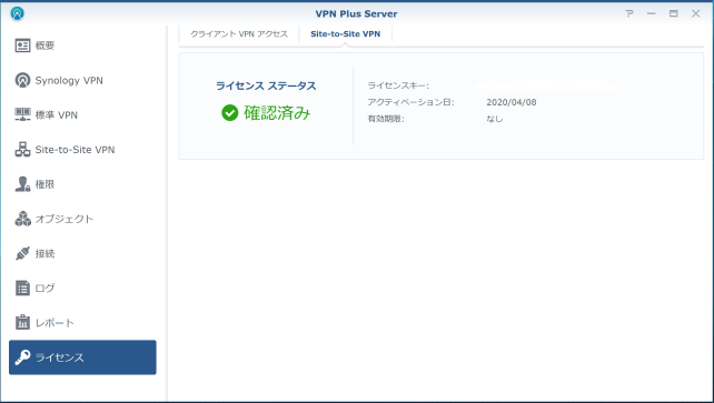 早速、自宅と会社のルーターに「VPN Plus クライアントVPNアクセス」を19ライセンス追加の合計20ライセンス。