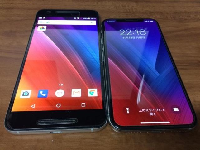 Nexusは5.7インチ。iPhoneXは5.8インチ。