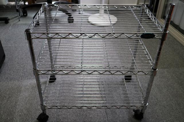 サブマシンの操作用に、トラックボールの位置を変えるべく、メタルラックを少し改造しました。