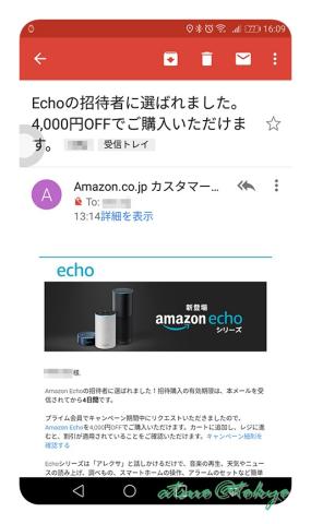 今回の一般販売に先立ち昨年11月8日から事前申し込みの招待制での販売を行っており、プライム会員なら11月17日までに申し込むと「Amazon Echo」が 4,000円引きになるとの事で初日に申し込みました。