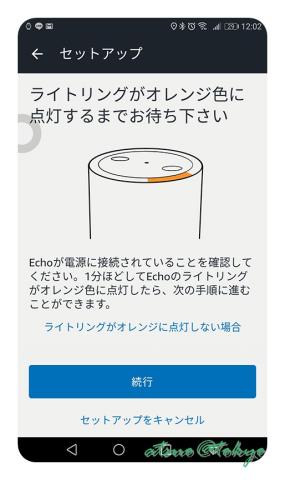 表示の通り上部のライトリングがオレンジ色に点灯するのを確認し「続行」をタップします。
