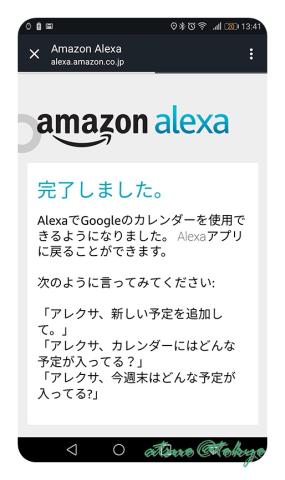 「Amazon Alexa」アプリに戻ると Echoに接続された旨表示されています。