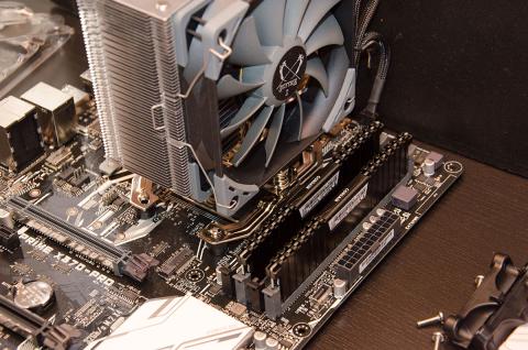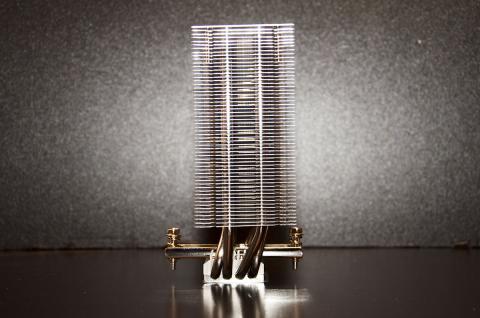 横から見てみると分かりやすいですが、メモリ干渉を抑えるためにフィンがナロータイプなっていて、かつ、後方にオフセットされています。(写真は向きが逆になっていますが)