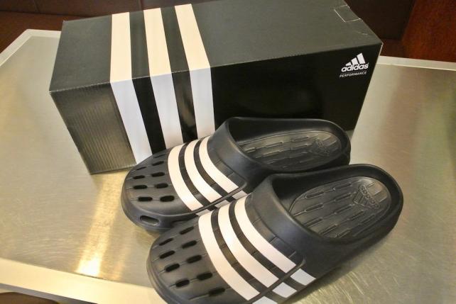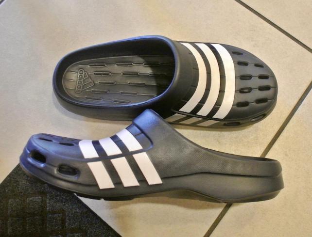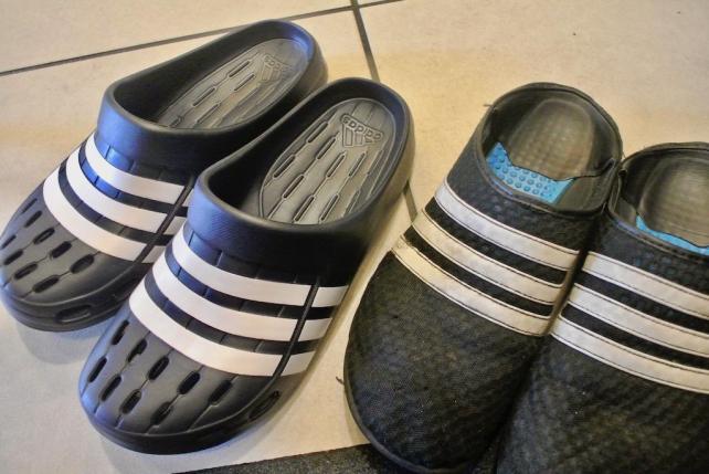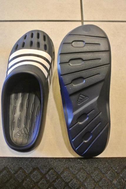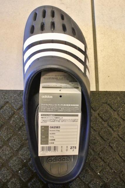 右はお役御免となった同じアディダスのサンダル ヒール部を任意に立てることが可能な仕組み