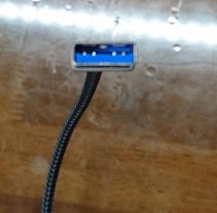 これ、ケーブルの取っ手部分というのかな? 接続部分の持つところ、これ、なんとアルミなんです。安いケーブルとかは大体プラスチックとかが多いけど、元値が高いだけあって作りはしっかりしてるんですよね。あと、ケーブルが固いからふにゃふにゃになるなんてこともなさそうだし、断線するなんてこともないんじゃないのかな。