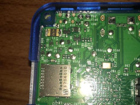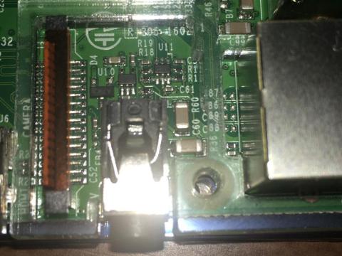 基板部品面中央のオーディオジャックの右となりのC60のセラミックコンデンサ部分