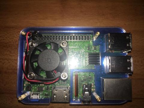 一番上のアクリルケースに冷却ファンを取り付けて被せます。