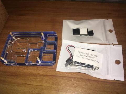 セット内容は、ケース(アクリル5枚)、ヒートシンク3個、冷却ファンとなっています。