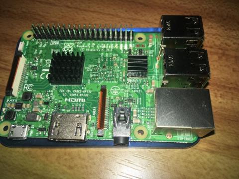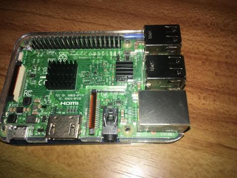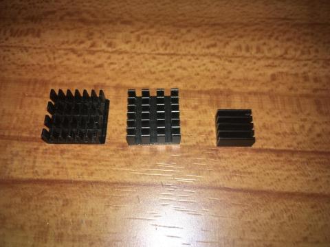 まず、ラズパイの基板にヒートシンク(両面テープ付き)を貼り付けます。
