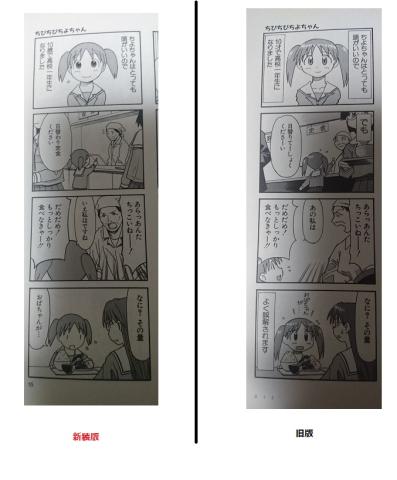 う~ん、やっぱ新装版はよつばと!の雰囲気が出てるようなきがするんだよなぁ。でもどっちも好きだし、そもそも新装版はリメイク版だからリメイクしてる時点での絵の雰囲気になるからしかたないのかもしれないですね。目がウルっとしてる旧版から点みたいになってる新装版。でもやっぱり好きやねん。あずまんが大王が! 面白いし・・・