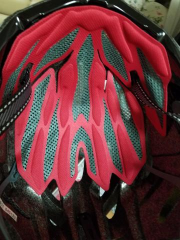 内部の調節機構はクラニウムロックと言うやつで、回すと頭が締め付けられる便利な機構です。3000円ぐらいの中華メットにもついているので、珍しいものではないです。素材がやわらかめで、頭には優しいのですが耐久度がちょっと心配。まぁOGKは交換部材がいろいろ売っているので、壊れたら取り寄せればよさそうです。