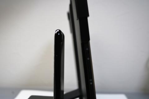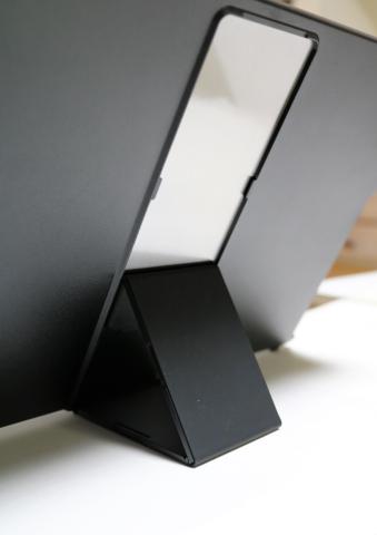 またモニタ本体の80%の部分が厚さ7mm、モニタ本体の20%の部分が厚さ9mmとなっており、本商品が持ち運びを前提にした作りとなっていることがうかがえます。