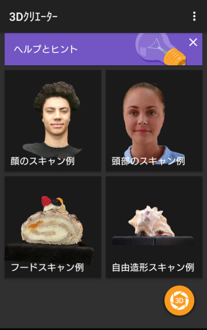 プリインアプリ「3Dクリエーター」を使えば、人の顔や物などを3Dで撮影できます。
