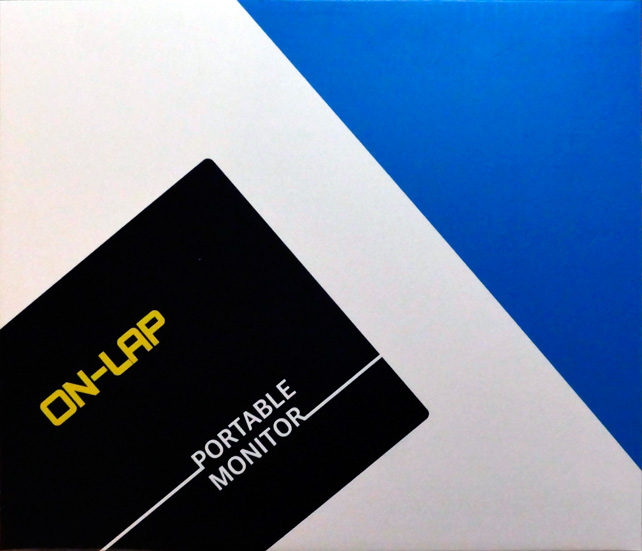 スカイブルー色と濃いグレーのコントラストが鮮やかで、Portable Monitor ON-LAPの文字がデザインされています。