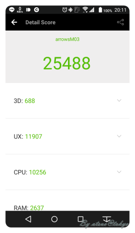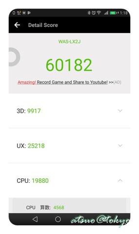 そしてオクタコアと言っても石が違うのでどの位の差があるのか、AnTuTuで計測してみました。
