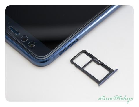 SIMスロットは奥側が SIM1、外側が SIM2になっており、SIM2は microSDカードスロット兼用になっています。
