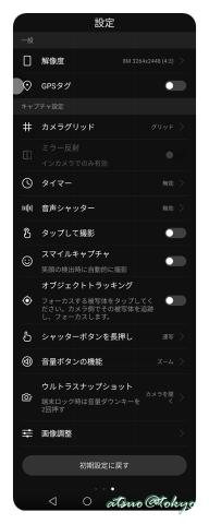 またインカメラはセルフィでキレイに撮れるように、標準でポートレートモード(肌を瑞々しく補正(10段階))が”ON”になっており、顔認識機能により背景を簡単にぼかす事も出来ます。まぁ、私には一切不要な機能ですが(^^;