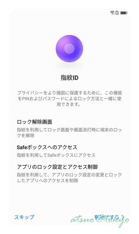 また指紋認証は他にも Safeボックス(フォルダ)へのアクセスやアプリのロック設定などにも使えます。