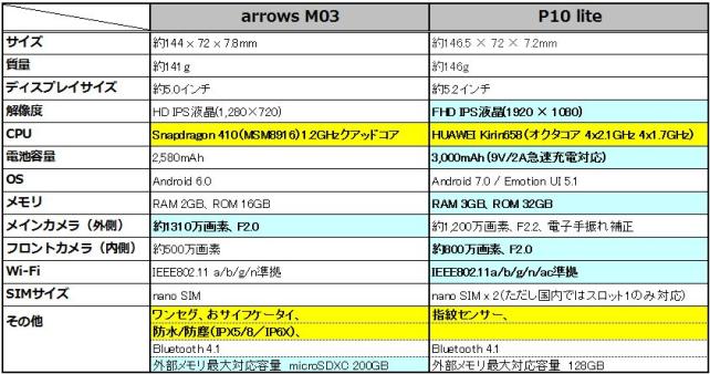 今まで使っていた arrows M03に比べ以下の点で優っています。