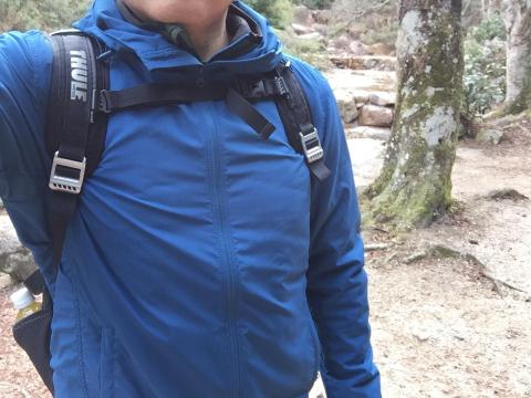 ・普段のトレッキングは「モンベル ライトシェルベスト」を着用してましたが、