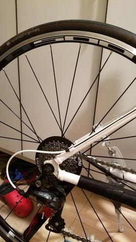 YPJの後輪はエンド幅130㎜のロード用ホイールと互換がありますが、スピードセンサーが読み取る磁石と台座(ホルダ)があり、これを移植するか、購入して取り付けないとアシストが利きません。