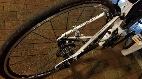 YAMAHAのYPJ-Cのホイールを外したところ前後で2450gあり、どうやら私は鉄下駄ではなく鉛下駄を履いていたようです。前後のスポークの数が減っているので、重量のあるE-bikeとしては多少不安ですが、高耐久で有名なR501なら耐えてくれるでしょう。
