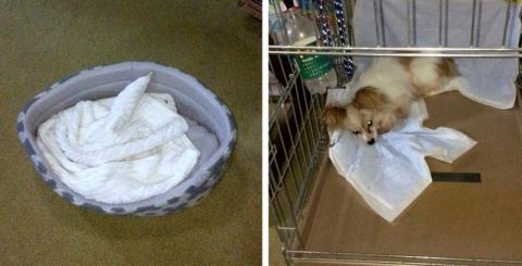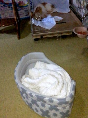 (新しいベッドに臭いを付けるため、使っていたタオルを中に…)
