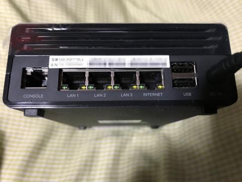説明書によると、これだけ沢山ある端子類は、「INTERNET」「USB」「DC IN」以外は使わないというのです。しかし、「CONSOLE」まで用意されている訳で、コマンド操作ができるとわざわざアピールしているようなものです。ちなみにこのCONSOLE端子はCISCO用のコンソールケーブルがあれば使えるとのことです。この端子の並びは、比較的低価格な業務用VPNルーターとほぼ同じなんですよね。