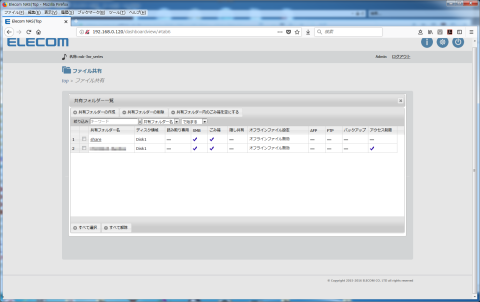 デフォルトでは特に制限などを設定されていない「share」というフォルダが一つ用意されています。この画面の状態では、そこに新たな共有フォルダーを作成して、アクセス制限を設定しています。