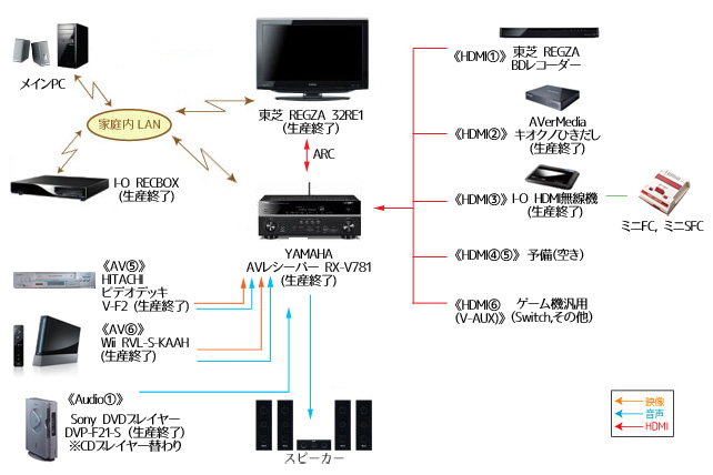 我が家のAV機器をつなぎなおした結果、こんな感じになりました。